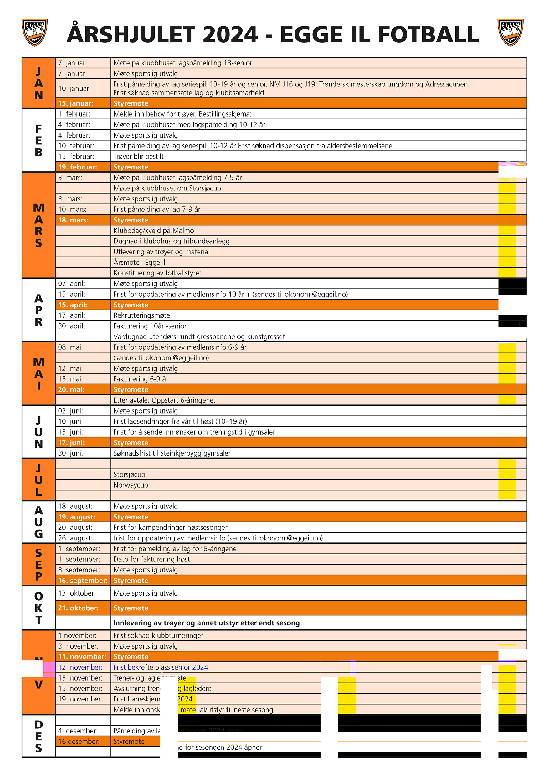 Gjennomføres 25.03.2026 kl 19:00 i klubbhuset. Saker som skal behandles må sendes inn til hovedstyret innen 10.03.2026.